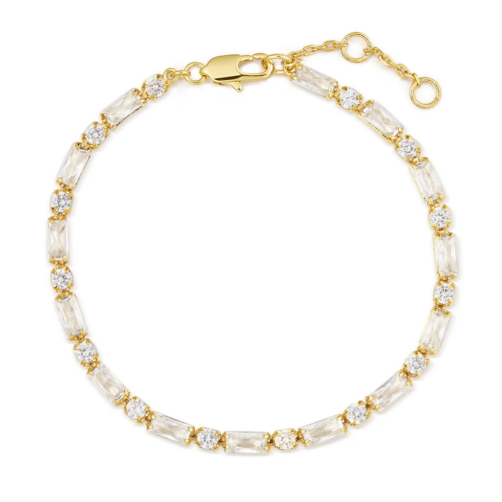 Elevate your style with the Savannah Bracelet, crafted from 18k gold plating and adorned with its tennis sparkling CZ stones. Its tried and true design exudes alluring elegance, making you the centre of attention. looking to it finishing off a captivating look that will leave a lasting impression.
