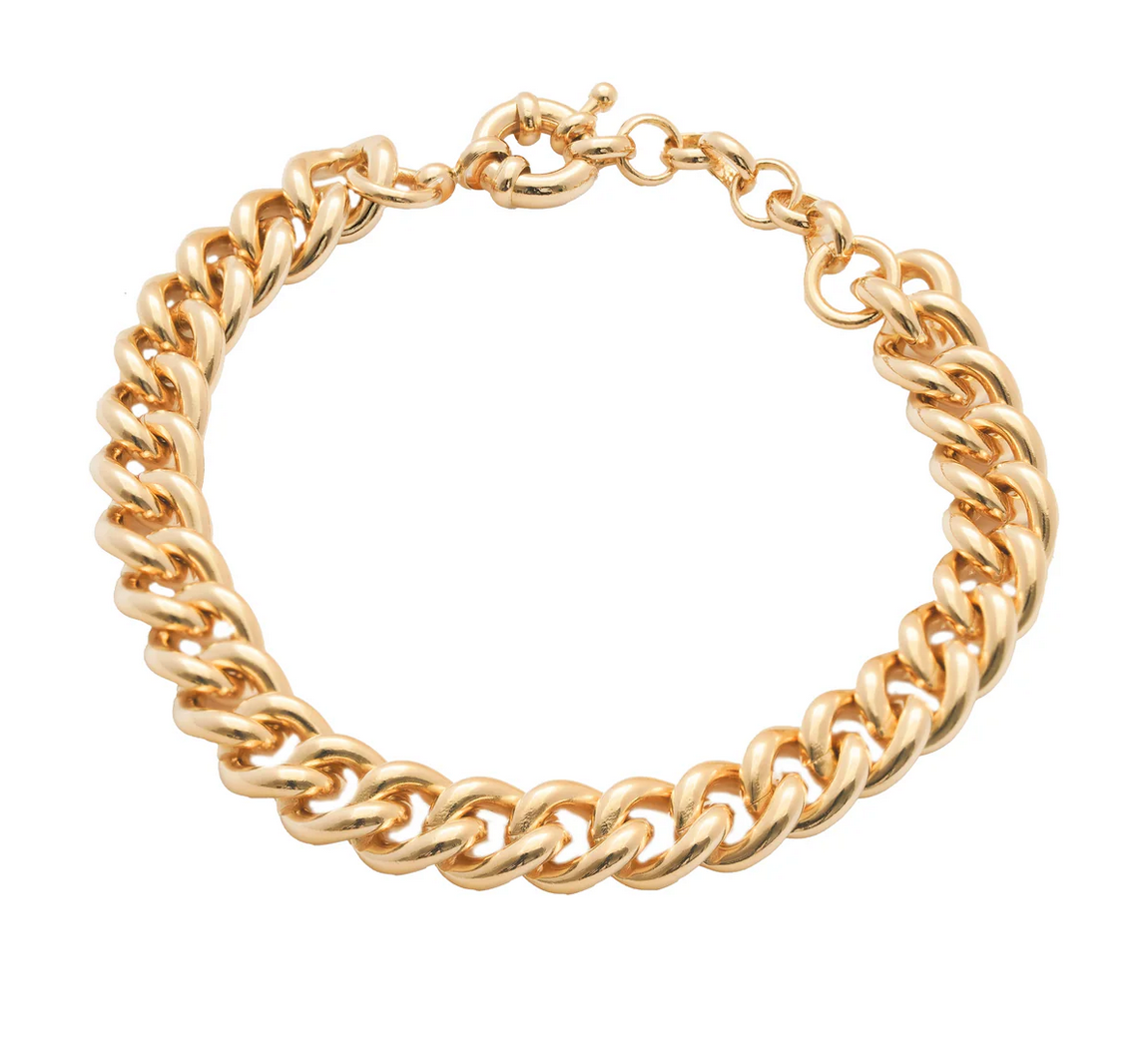 The So Called Bracelet features a chunky anchor design with a luxurious 18k gold plating. This statement piece is both chic and versatile, ideal for layering with other bracelets to create a stylish arm stack. Its bold yet elegant look makes it a perfect addition to elevate your everyday outfits with confidence.