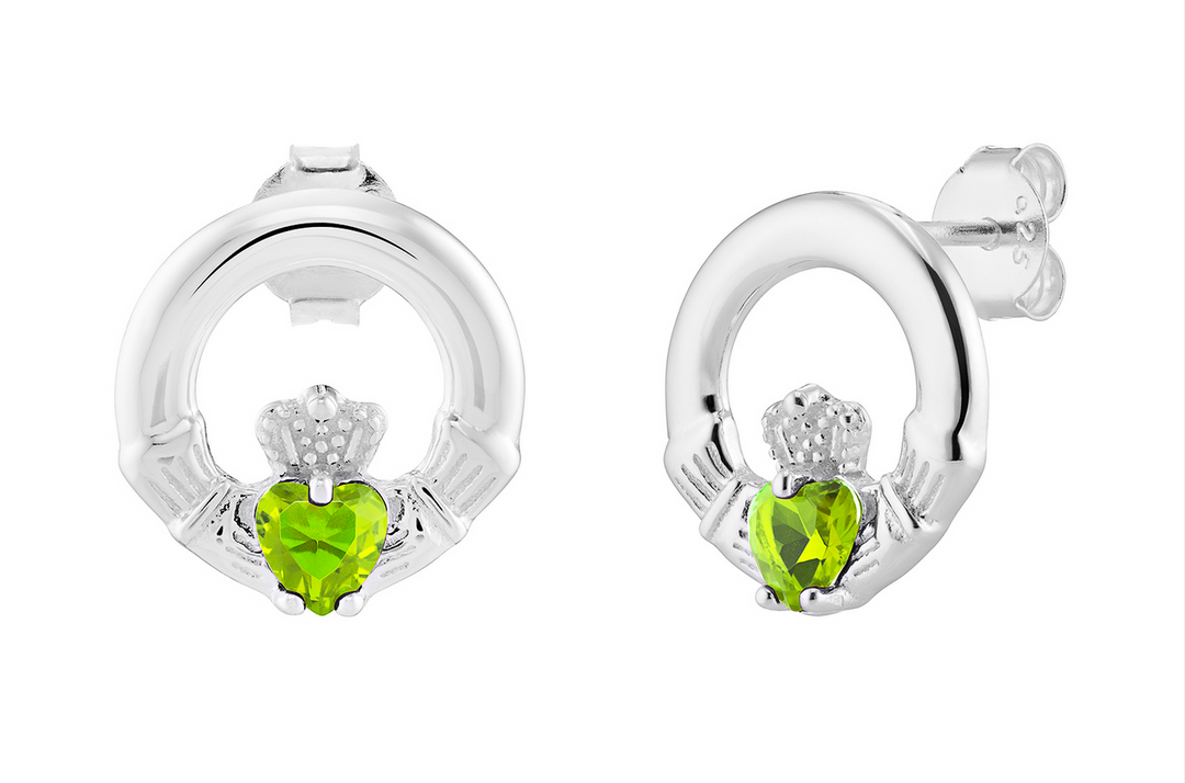 August Birthstone Claddagh Earrings