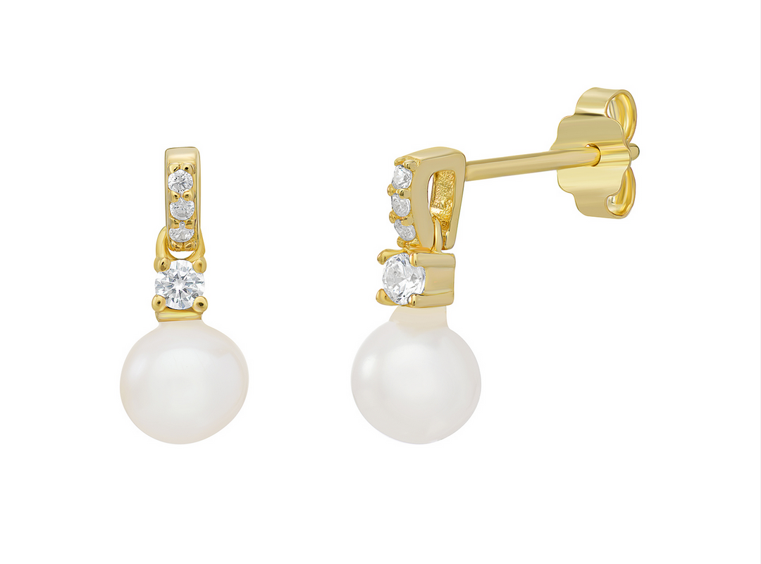 S/S CZ G/PL Pearl Earrings