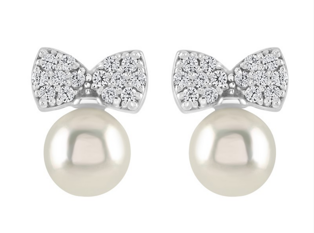 Pearl Bow Stud Earrings