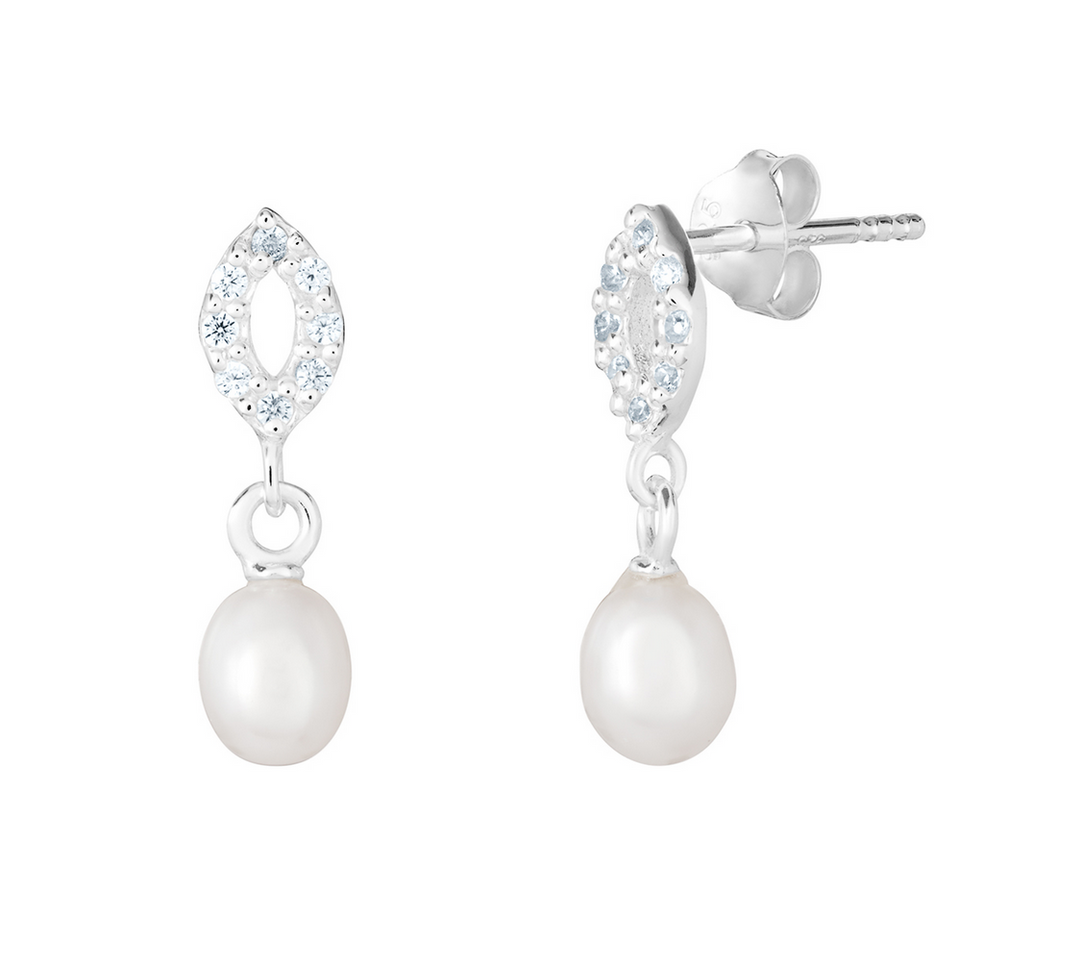 S/S CZ Drop Pearl Earrings