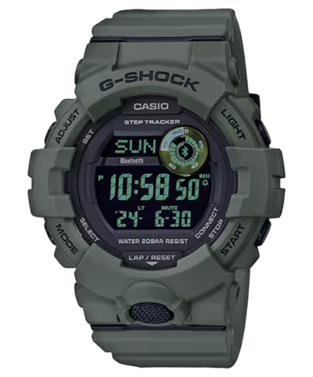 Additionally, the two-layer structure of the back cover also guards against impacts to the back of the watch. The shock-proof button structure also allows the exterior to be designed without a button guard.  The design features a three-dimensional dial and a bold arrangement of large front buttons. Finished with a tough design that creates a powerful look.